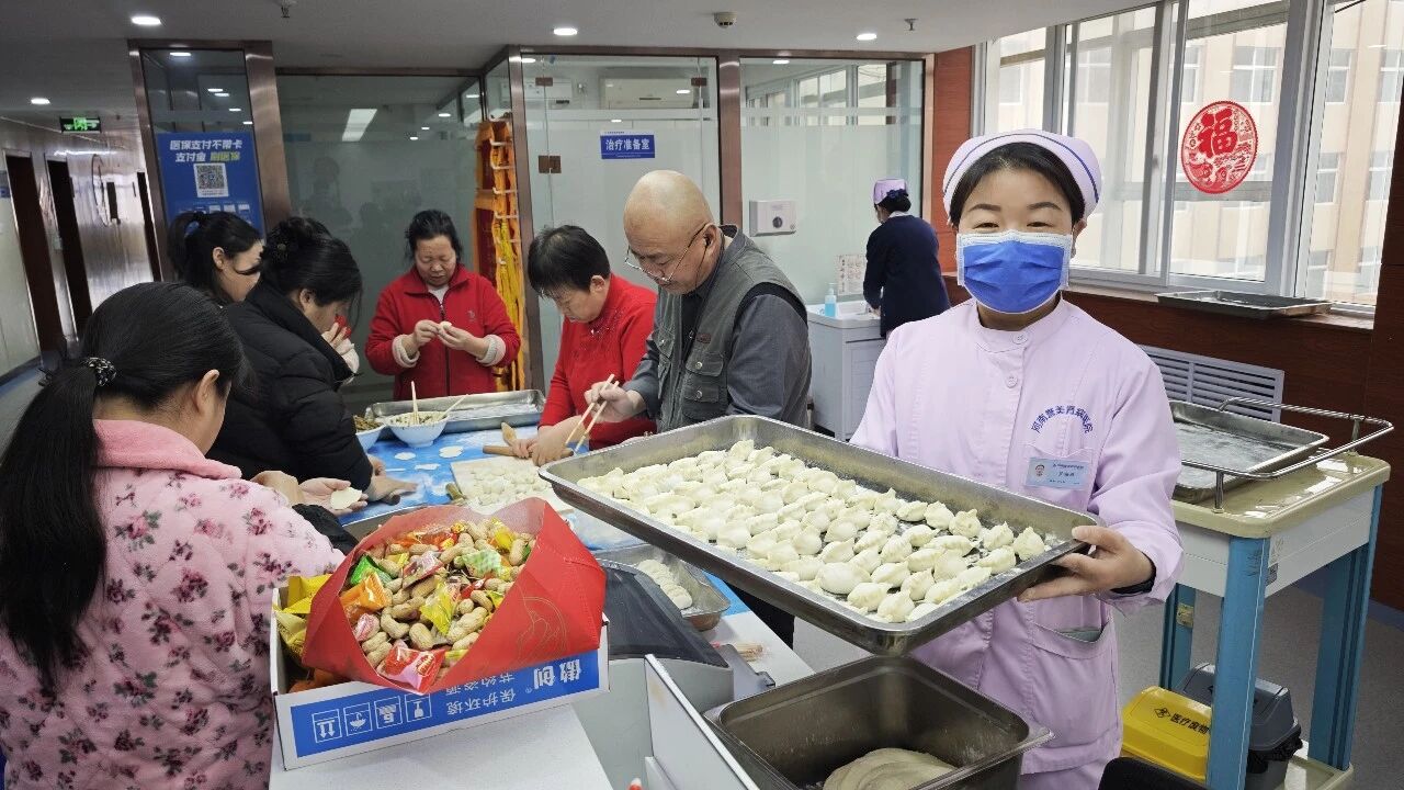 大家一边忙碌,一边分享着各自家乡的过年习俗和包饺子的趣事,欢声笑语此起彼伏,平日里病房的紧张氛围被节日的喜悦所取代。